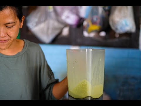 In a blender, add the coconut milk, condensed milk, and a handful of ice cubes. Blend until smooth and frothy. Pour the blended coconut mixture into a glass.